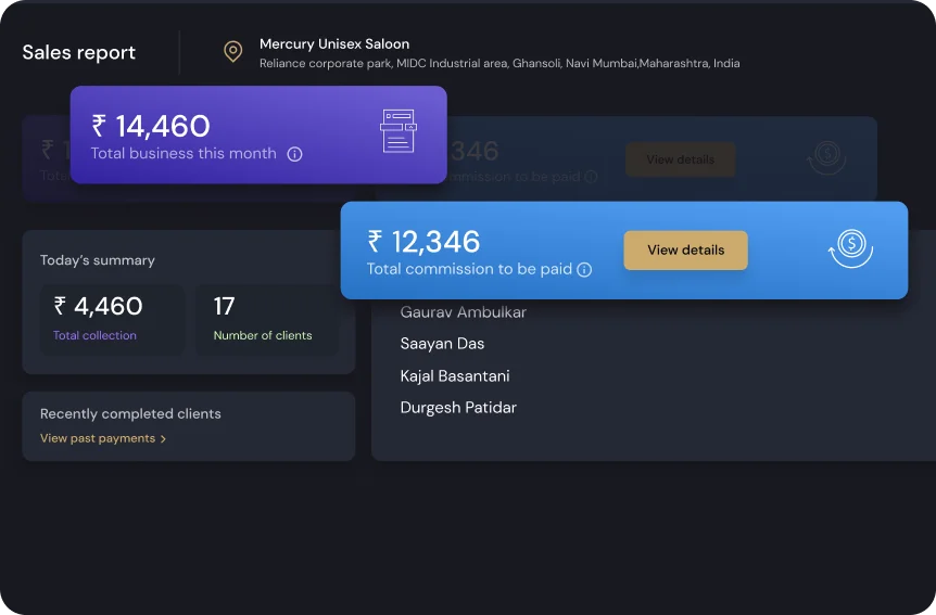 Our platform automatically calculates commissions based on sales and services rendered, ensuring accuracy and transparency. This advanced feature eliminates the guesswork and potential errors of manual calculations, guaranteeing fair compensation for your staff.